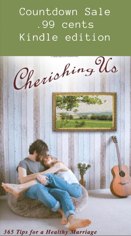 This past February we published our first book to help marriages continue to grow. It’s titled, Cherishing Us – 365 Marriage Tips to Help Your Marriage Grow. This week we are offering the Kindle edition in a Countdown Sale. Beginning at 8a today, the price is only .99 cents for 24 hours. On Wednesday the price goes up to $1.99 and on Thursday the price is $2.99.